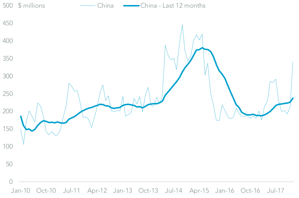 Imports of the metals covered by the new Chinese duties were worth $869 million in 2017, with 95.8% being scrap aluminum. Notably imports of the latter reached the highest since at least 2013 in December 2017.