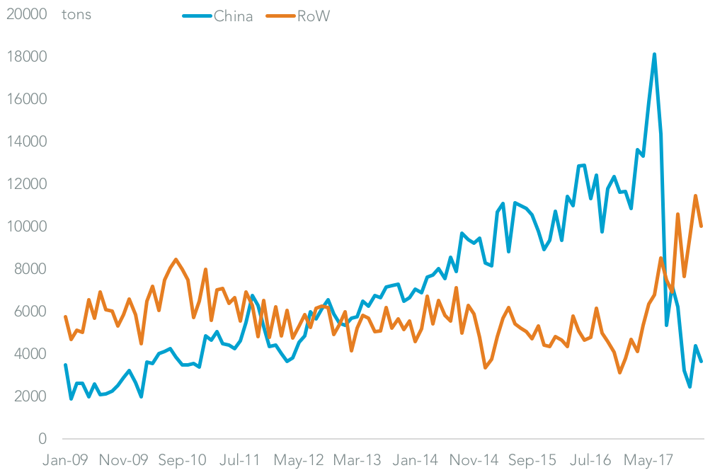 Panjiva data shows the case has been partly successful in deterring exports from China, with shipments in February having fallen by 61.9% vs. the prior 12 months average. However, other suppliers – including from Armenia, Brazil, Germany and Russia – have taken up some of the slack with a 34.4% increase over the same period. Total imports fell by just 19.7% as a result.