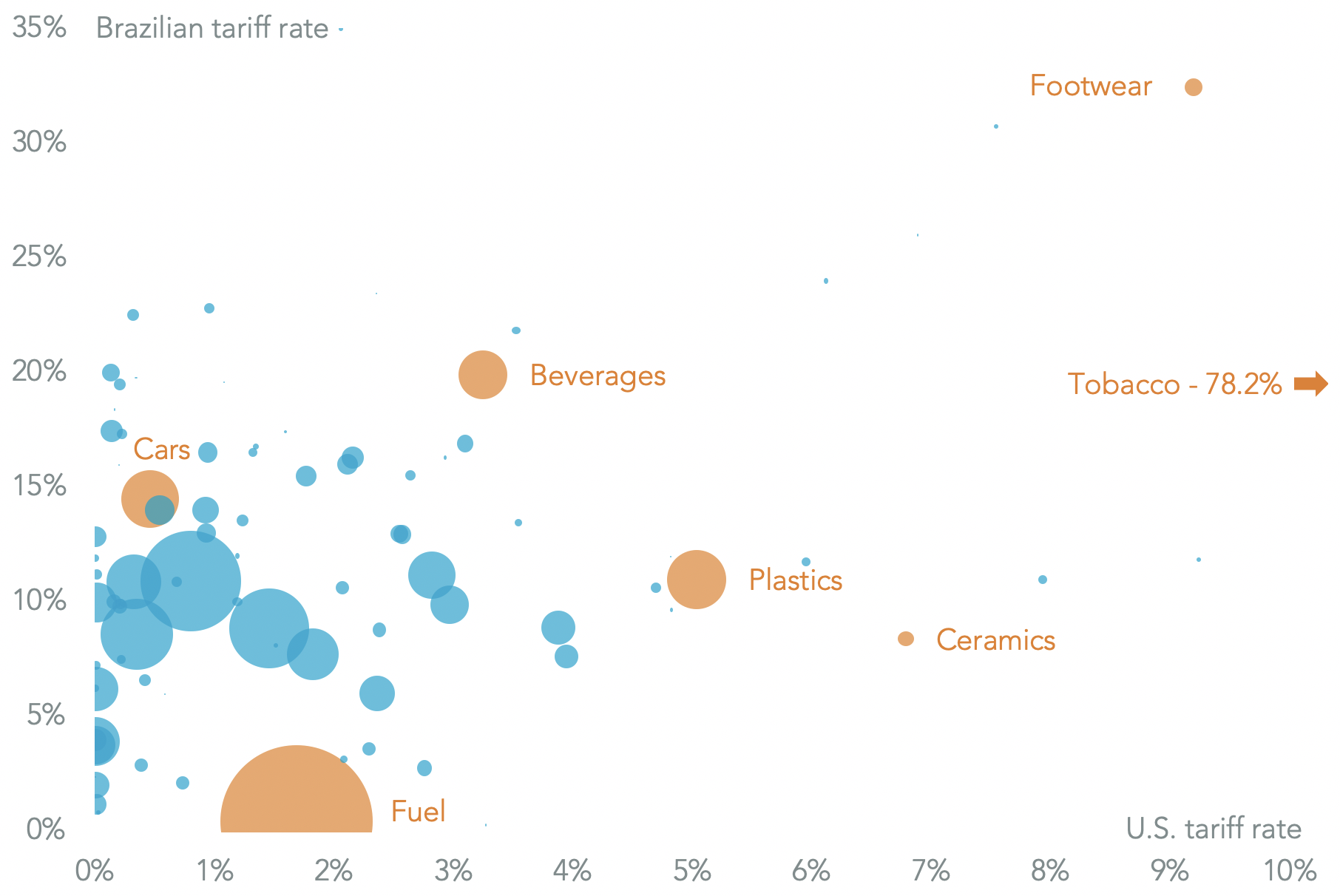 Yet, Brazil stands to lose significant tariff income on a relative basis should a deal proceed. In 2018, Brazil collected an estimated $2.3 billion in tariffs from the U.S., compared to $481 million earned by the U.S. on imports from Brazil.