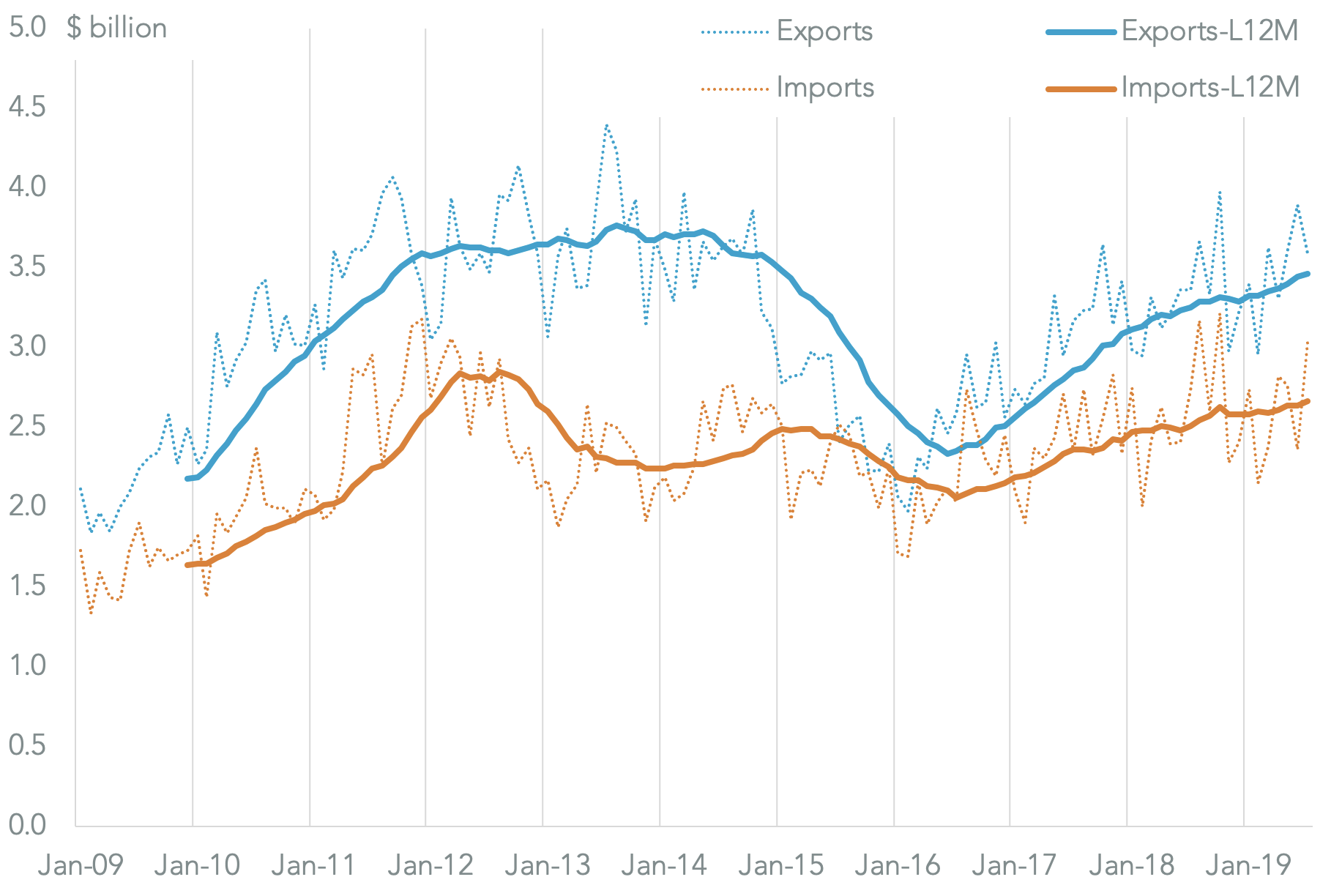 Panjiva data shows that U.S imports from Brazil have increased by 6.0% year over year on a twelve month average basis to Jul 31, to reach $31.9 billion. Exports to Brazil meanwhile climbed 6.6% to reach $41.6 billion. The resulting trade surplus will be seen as a positive by the Trump administration, who may want to solidify the gains made since a dip in the surplus in 2016. It may also help find new markets for goods displaced by the trade war with China.