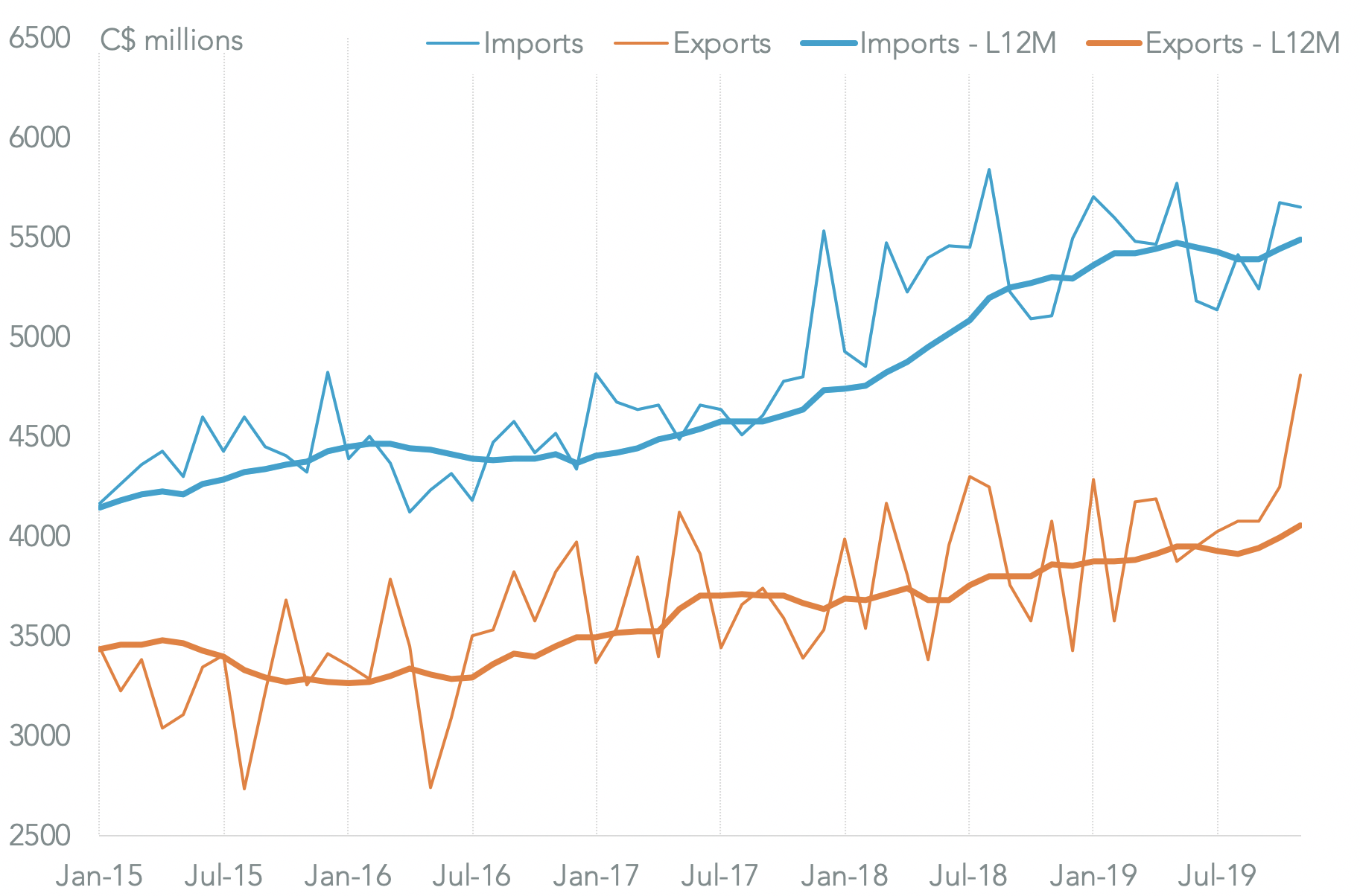 Chart segments Canadian trade with the EU by direction. Calculations include StatCan data. Source: Panjiva