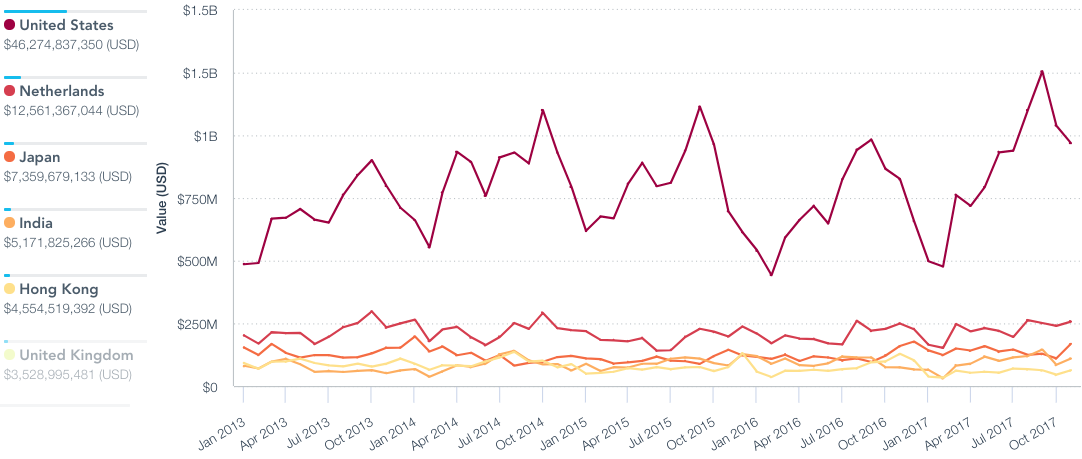 Exports of televisions from China have gone through a marked resurgence recently, with a 12.8% jump in the past quarter Panjiva data shows. That follows a decline in 2014 and 2015, and has been led by a 21.9% jump in shipments to the United States.