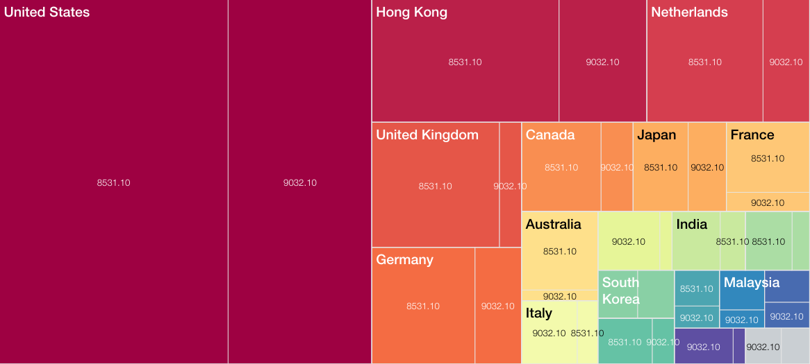 Chinese manufacturers may have had less success in connected-home devices. Exports of home security systems (HS 8531.10) have actually fallen by 11.4% on a year earlier in the 12 months to November 30. Thermostats have done somewhat better with a 14.2% increase to reach $668 million in the past 12 months. However, a 12.1% drop in the month of November suggests thermostats did not necessarily gain mass acceptance as a holiday gift.