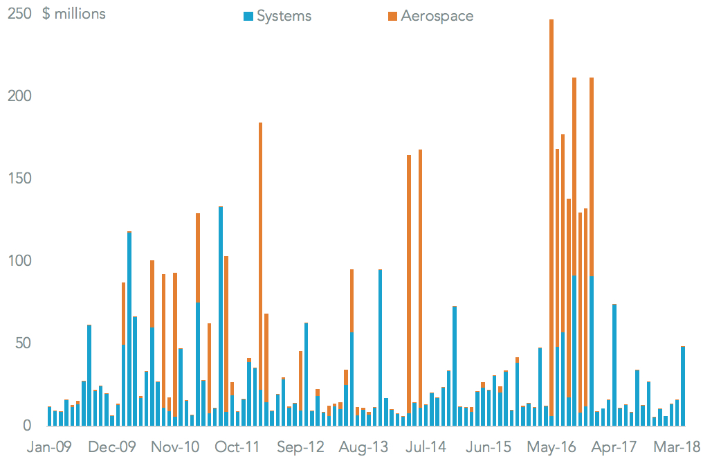The American defense systems industry had a quiet month in May for new orders. Panjiva analysis of Department of Defense data shows there were approved orders of just $1.45 billion in May after an average $6.44 billion per month year-to-date in 2018. That may not be helped in coming months by the increasingly fractious trade relations with Europe and Canada caused by the implementation of duties on steel and aluminum as outlined in Panjiva research of June 1.