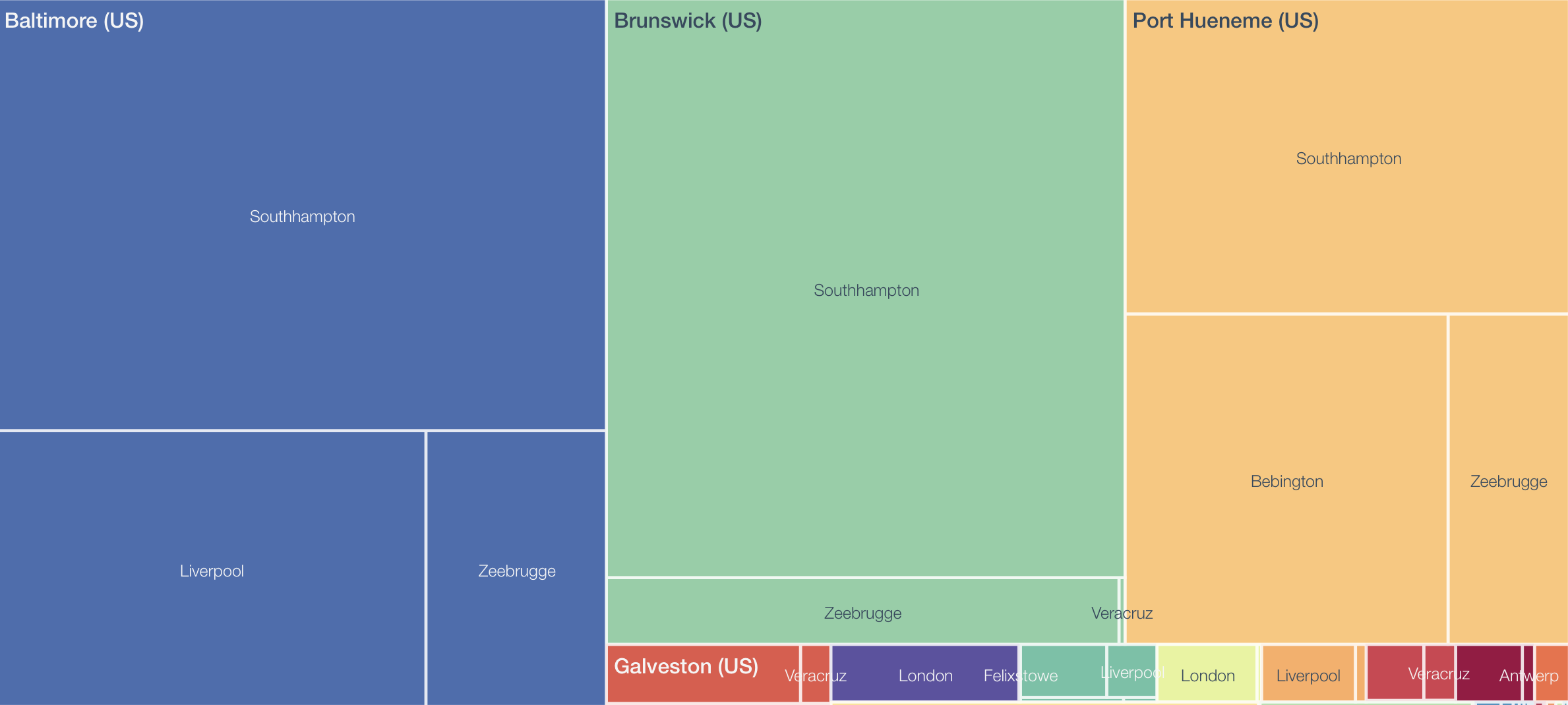Panjiva data shows Jaguar Land Rover likely imported 30.1% of its U.S. imports through the port of Brunswick in the 12 months to Sept. 30. That was slightly behind Baltimore, which represented 38.8% of the total, while west coast shipments via Port Hueneme represented 25.8%.