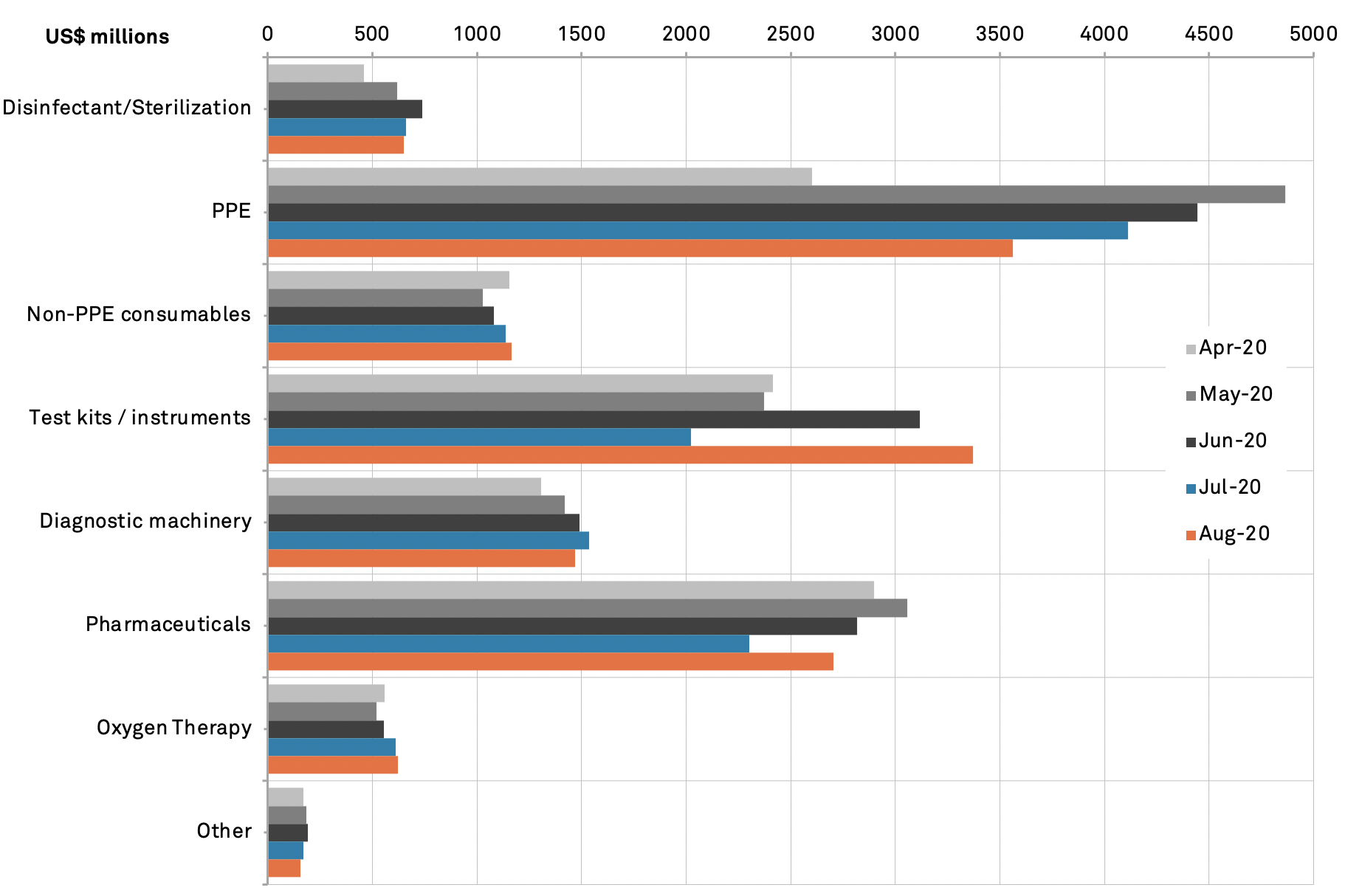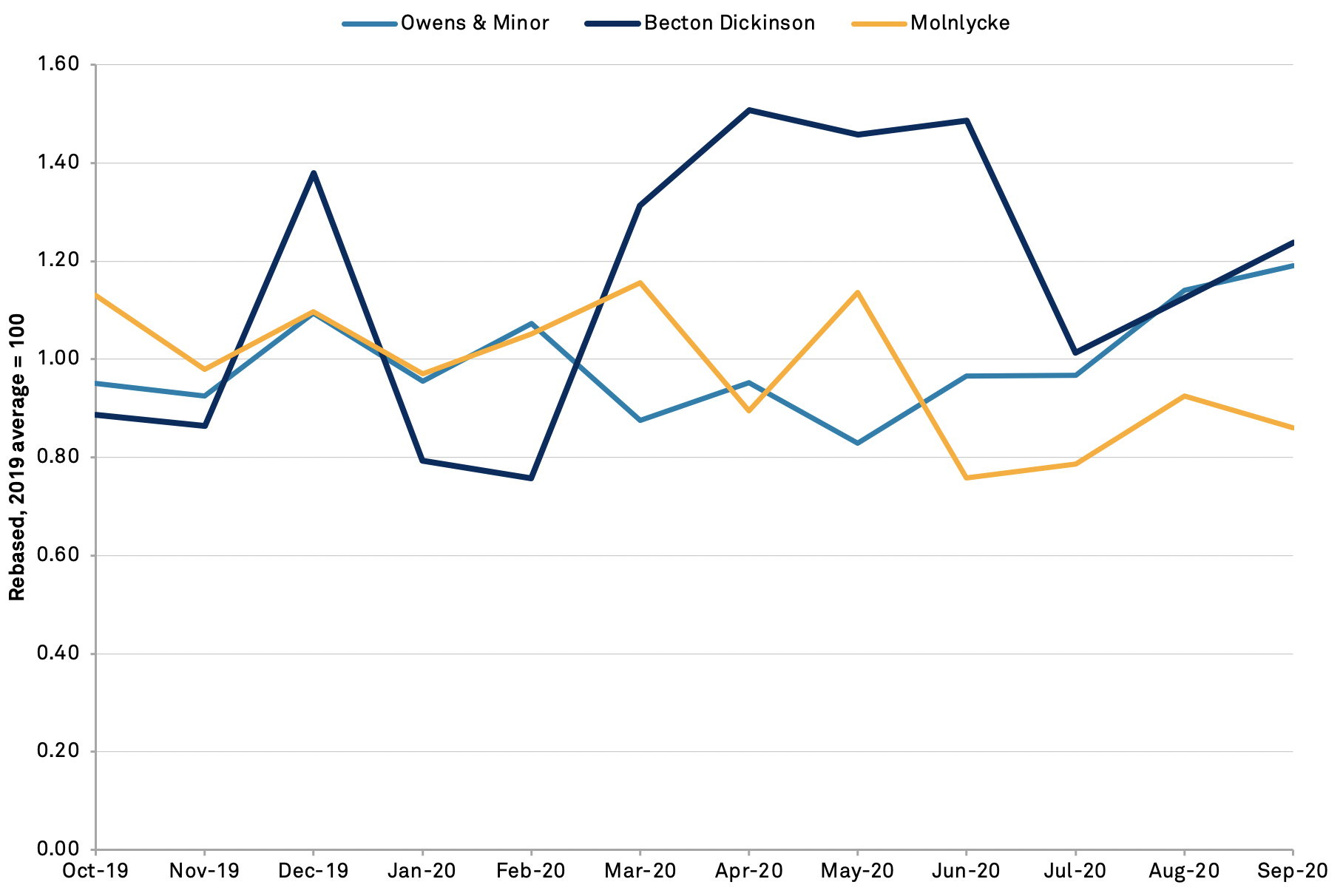 Other medical supplies may be picking up however, with the key distribution firms seeing an increase in shipments in August and September.