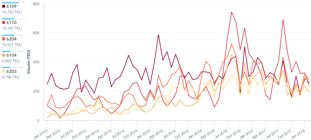The slowdown has been particularly marked in imports of t-shirts (HS 6109, down 32.1%) and sweaters (HS 6110, off 28.9%). The cut in suppliers has been common across H&M’s suppliers, with 30.0% of products sourced from Bangladesh and 26.8% from China.