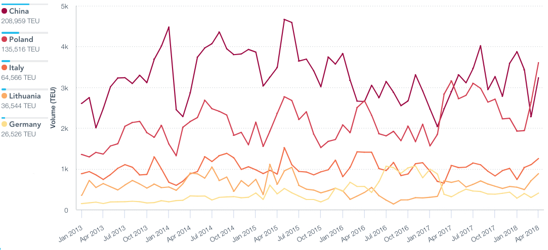 One reason for the import slowdown may have been concerns about duties on imports from China. While furniture was not included in the initial list of section 301 duties, as outlined in Panjiva research of April 5, President Trump’s subsequent call for a further $100 billion of duties could have captured the sector.