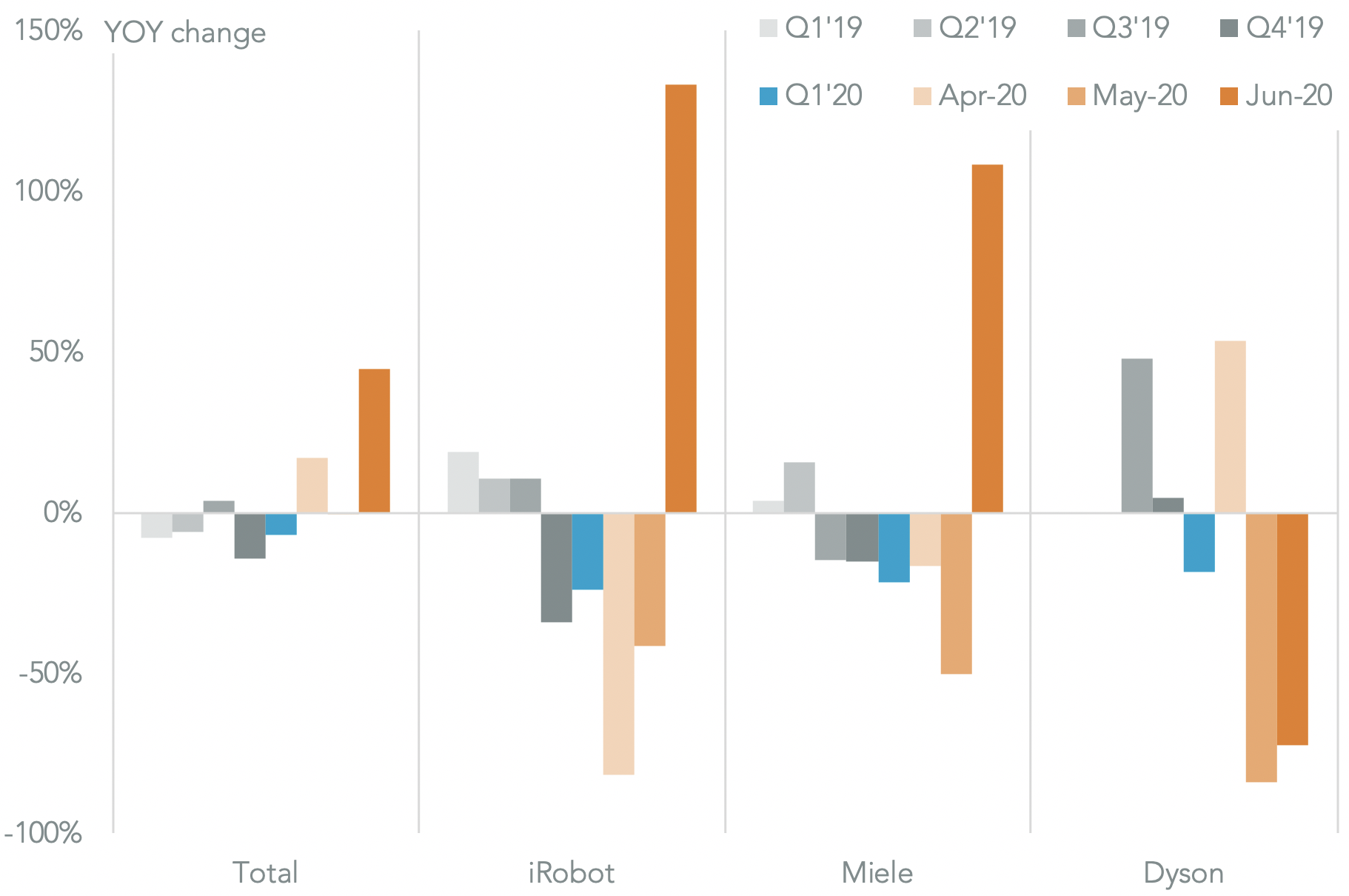 iRobot was not the only vacuum cleaner maker to see that effect. Total U.S. seaborne imports surged 44.8% higher in June having declined in May while those linked to Miele 108.5% higher after a 50.5% drop in May. By contrast Dyson saw a continued downturn in June, which may reflect its reliance on manufacturing in Malaysia rather than China.