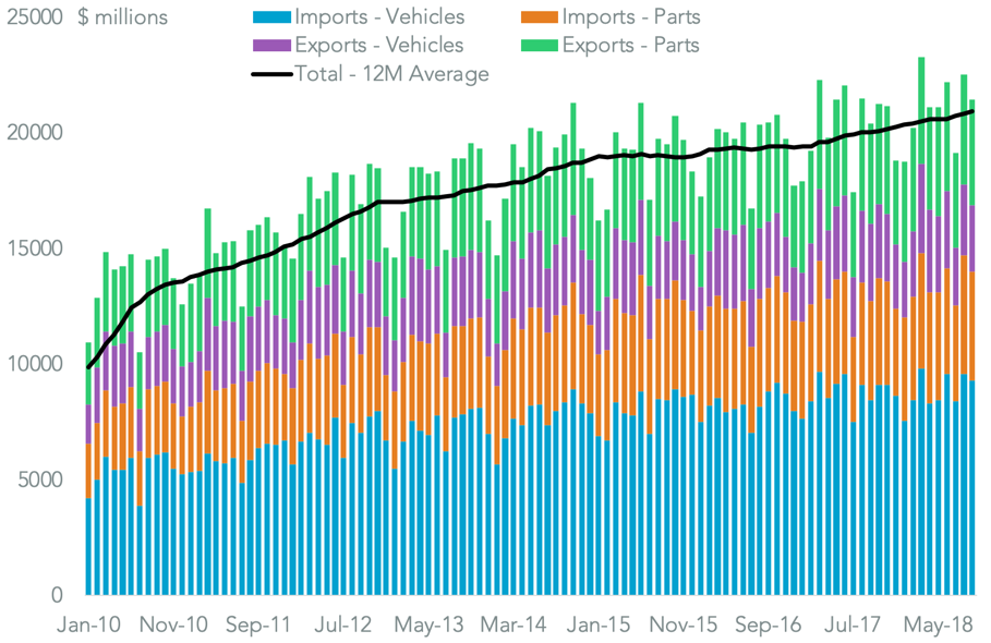 The automotive sector already faces uncertainties from the section 232, “national security” review of the industry. The application of duties under a similar scheme has had only a marginal impact on the steel and aluminum sectors – U.S. imports fell by just 7.0% in dollar terms vs. the second quarter and by just 1.7% vs. the first quarter.