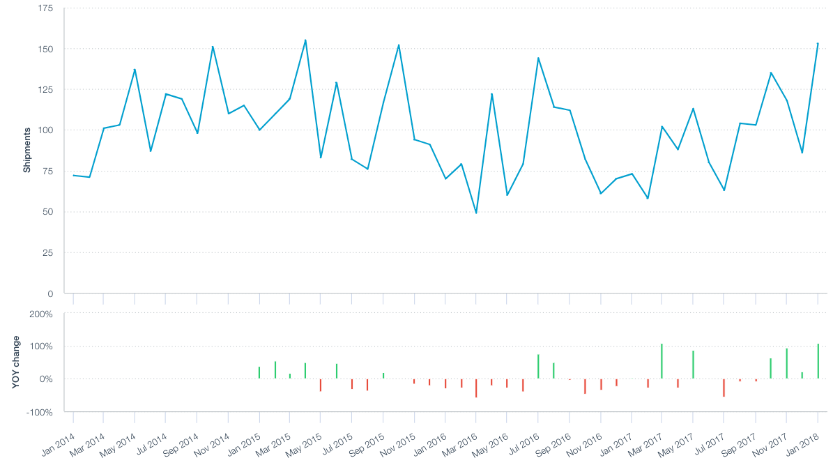 Freight forwarder K+N has launched a dedicated Shanghai-to-Chattanooga (U.S.) less-than-container-load service for the automotive industry. The company says the service should offer a 20 day direct routing, improving inventory management for customers on the route. Panjiva data shows seaborne shipments arriving at Chattanooga have expanded by 15.1% in the past 12 months to January 31 on a year earlier. That’s a marked acceleration from 2.2% annually over the past three years.
