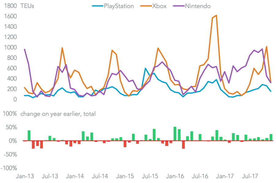 It may also be a response to a renewed surge in sales of Microsoft’s Xbox, imports of which fell year-on-year but had overtaken those of Nintendo in absolute terms in November for the first time in a year. Imports in the fourth quarter rose 40.8% sequentially vs. a 35.4% drop for Nintendo. That likely came after the release of the Xbox One X system may have resulted in slow initial sales.