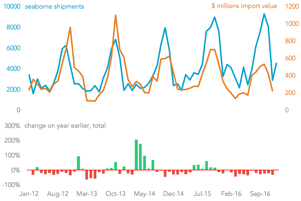 U.S. videogame imports ended 2016 on a low note, with Panjiva data the value of shipments dropped 32.4% in December, and 24.8% in the fourth quarter on a year earlier. That came despite the launch of new models of the Sony PlayStation. However, shipment data for January shows a 2.2% growth on a year earlier, suggesting a recovery might be underway.