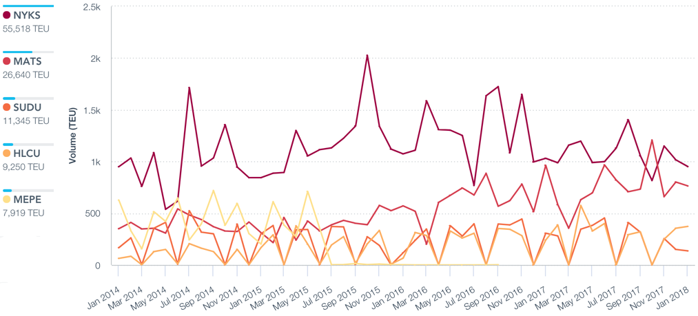 Container-line Matson reported 4Q 2017 revenues that fell 1% on a year earlier, though that was 2% better than expected. The downturn was due to an 11% slump in Hawaiian traffic which has shown no sign of recovering in 2018 based on NWSA data. The better-than-expected revenues may reflect premium pricing in its Chinese service, though volumes there have fallen too. The decline in revenues compares to a 15% improvement for the container-line sector broadly.