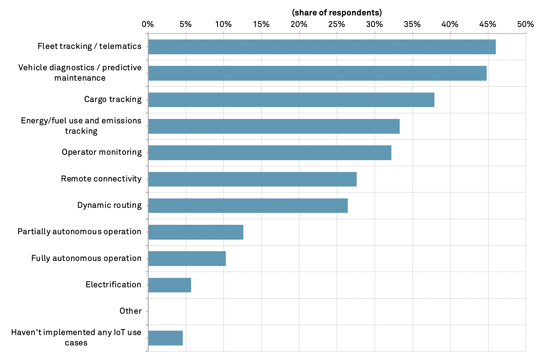 Thus far, the main shipping and logistics firms have focused on investments in booking platforms, blockchain and similar systems to tackle the immediate threat from challenger freight forwarders. Looking ahead, the Internet of Things (IoT) will be a vital linchpin to success because it enables the tracking of vehicles, vessels, shipping containers and the goods the shipping industry holds. We expect that three use cases in particular – cargo tracking, fuel and emissions use, and predictive maintenance – will take top billing in digital transformation projects in this space.