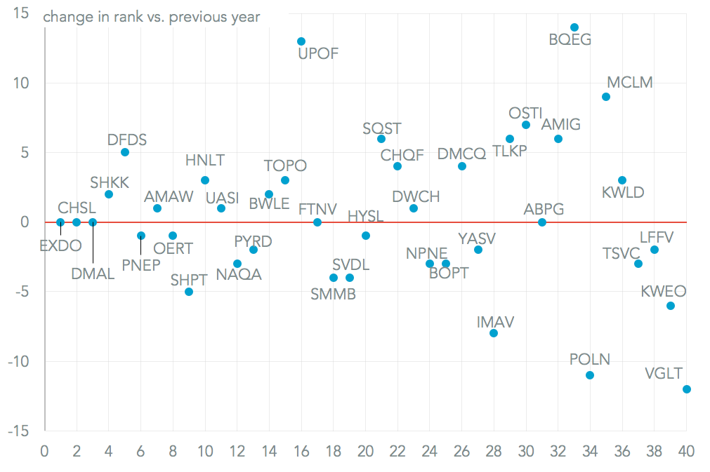 Deutsche Bahn-Schenker’s growth of 22.5% appears to be largely the result of organic growth, and resulted in it jumping to fourth place in the NVOCC rankings behind an unchanged top three led by Expeditors of Washington. The strong growth in volumes seen by the larger operators will be needed to underpin analysts’ expectations of a 10.3% growth in revenues in the first quarter on a year earlier (based on consensus estimates for DSV, Expeditors, K+N, Nippon Express and Panalpina gathered by Reuters).