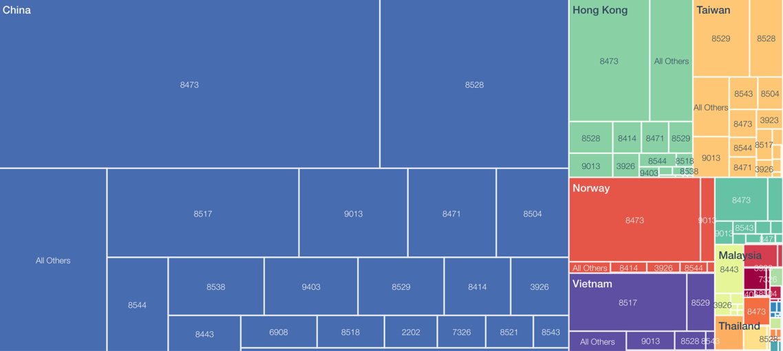 That was lead by computer components which accounted for 26.6% of all imports. U.S. imports of such components by all manufacturers have been crushed by tariffs of 25% since July 2018, as outlined in Panjiva’s May 9 research.