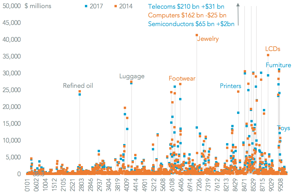 The electronics industry retains its primacy though, with semiconductors being both the most important import line at 14.5% of all imports and a 15.9% growth rate. One of the most important areas of growth, however, and one that is typically liberalized by trade deals is pharmaceuticals, where imports have grown by 31.8% to reach $16.6 billion.
