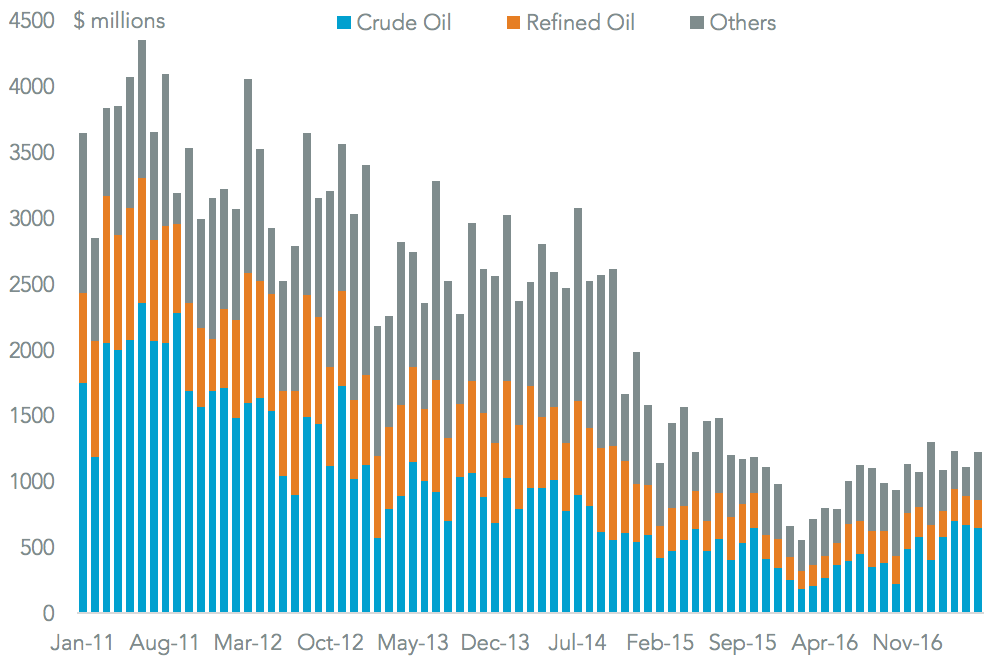 Panjiva data shows U.S. imports of Venezuelan crude oil and refined products would provide the most leverage. These accounted for 65.9% of total U.S. imports from Venezuela in the past 12 months, or $8.9 billion of shipments. Imports of non-energy products have fall already, by 10.0% in the past quarter on a year earlier. Such restrictions would also have a knock-on effect on U.S.-based, but PdVSA-owned refiner Citgo which processes Venezuelan crude.