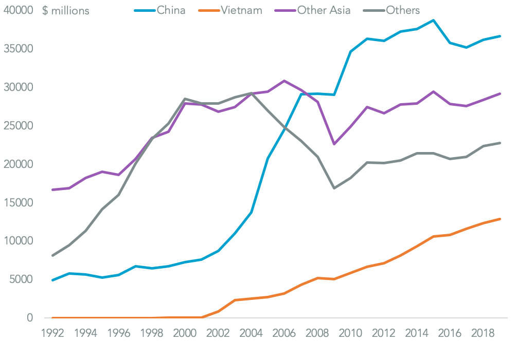 Panjiva analysis shows that the biggest products not yet covered are all in the consumer sector and include: smartphones where imports were $43.2 billion in 2018, representing 81.8% of total imports; apparel and footwear worth $42.1 billion, representing 37.6% of the total; laptop PCs worth $37.5 billion, equivalent to 94.4% of the total; toys worth $11.9 billion which is 97.6% of the total; and videogame consoles worth $5.4 billion, representing 97.6% of the total.