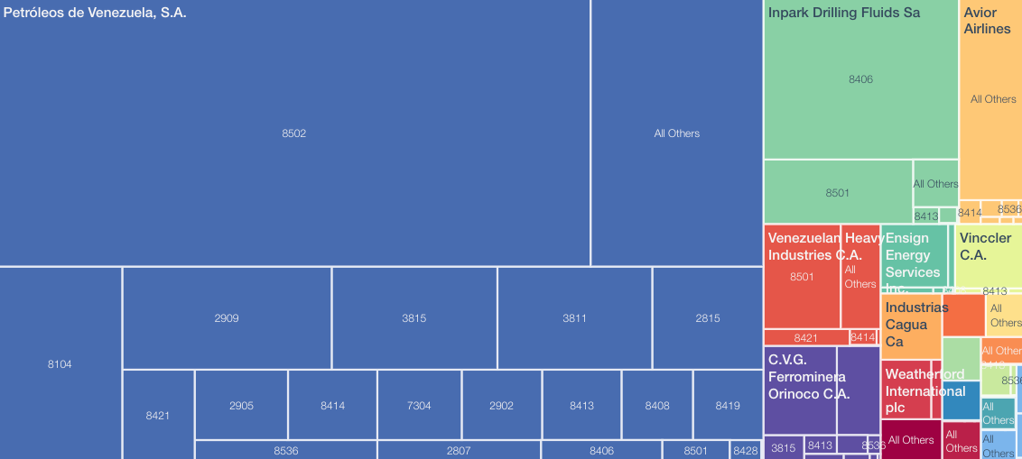 Panjiva data shows U.S. bilateral trade with Venezuela ( exports plus imports) fell 85.5% year over year in 2Q after the end of oil imports in February – as outlined in Panjiva’s research of Jul. 31 – cut imports by 87.2%.